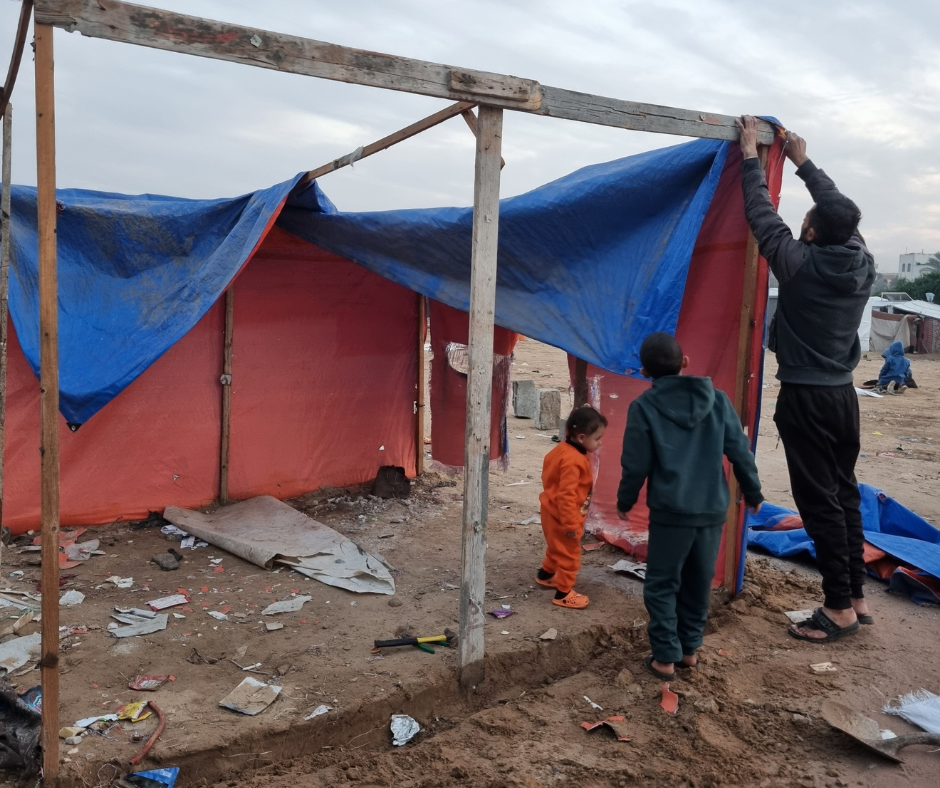 ”Vi frygter den kommende vinter, fordi vores telt ikke kan modstå regnen, og kulden dræber børn før sygdom gør”, fortæller Abu. Sidste vinter befandt familien sig i et telt i Khan Younis, hvor hans lille datter, Hiba blev syg af kulden. ”Teltet kollapsede, og vi havde intet tæppe til at varme min datter”.